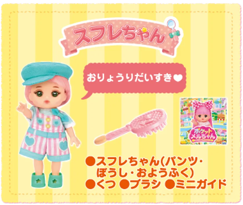 セット内容 :スフレちゃん(パンツ・ぼうし・おようふく)くつ、ブラシ、ミニガイド