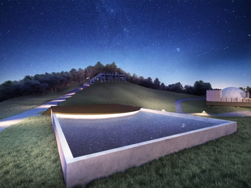 星空水盤デッキは、水盤に映る星と一緒に写真撮影が出来る、インスタ映えスポットです。