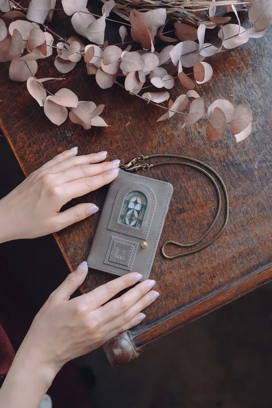 このシリーズ誕生の発端は、デザイナーが主にヨーロッパのアンティークドアの重厚感やストーリー性のあるところに魅了され、革で表現をし、日常的に使う小物にできないだろうか?と考え“持ち歩くオブジェ”をテーマに開発。