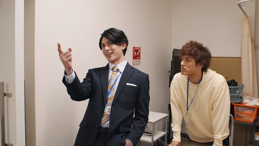 舞台を中心に活躍する実力派キャストが勢揃い。周りから好かれるまっすぐなチーフADを長江 崚行、クールな人気アナウンサーを砂川 脩弥、正義感の強い熱血ディレクターを武子 直輝、真面目だがテンションの移り変わりの多いアナウンサーを高柳 明音が演じました。それぞれ人物の関係性を丁寧に、しかしテンポ良く表現しています。ワンカット撮影でありながらキャストの表情にフォーカスしたシーンにもご注目ください。