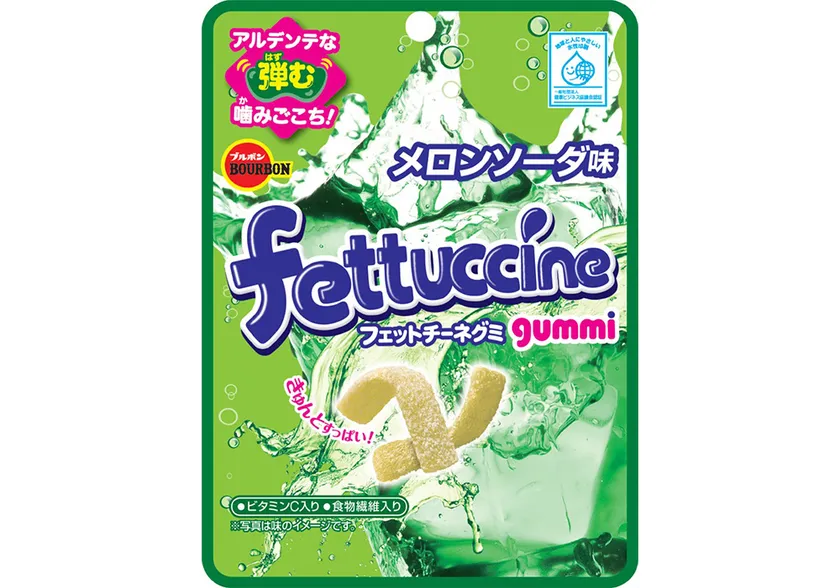 ブルボン、懐かしいメロンソーダの爽快感グミ 「フェットチーネグミメロンソーダ味」を 7月12日(火)に販売開始!