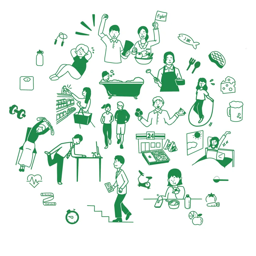 スマホひとつで完結!簡単な操作性はもちろん、毎日楽しんで続けてもらえるよう期間中は数多くのコンテンツを配信し、目標達成を応援します。コンビニを活用した食事術や、ながらエクササイズ、食事バランスの黄金比や簡単レシピなど、幅広いジャンルをお届け。また、従業員様からのお悩みや質問に、管理栄養士とトレーナーが直接お答えするコンテンツもご用意するなど、サポート体制は万全です。