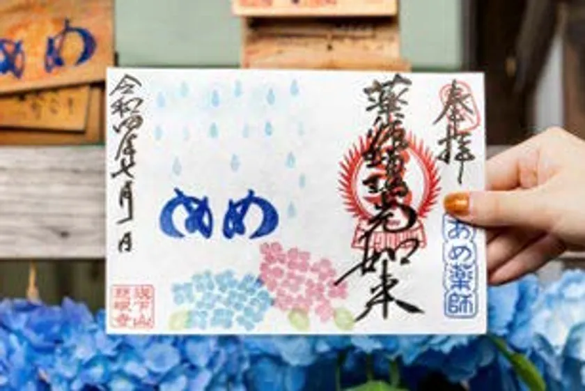 夏季限定めめ御朱印「紫陽花に雨」
