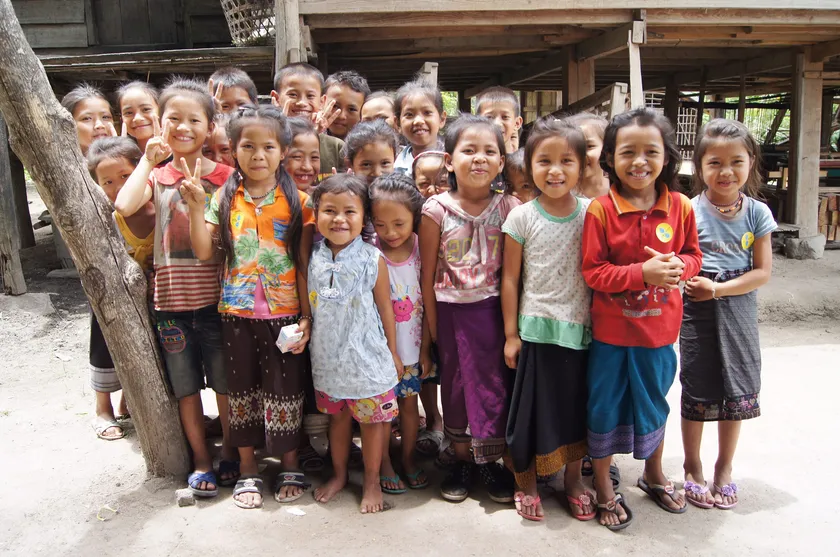 ラオス_ワクチン接種会場に集まった子どもたち (C)JCV