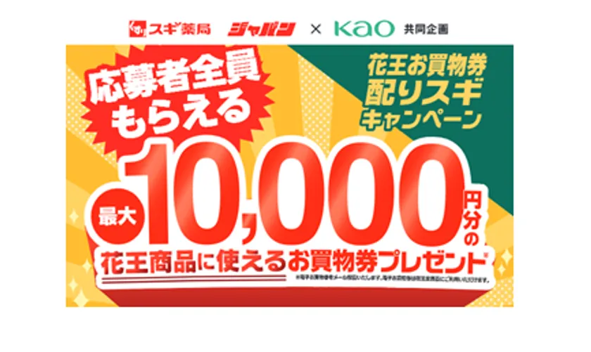 株式会社スギ薬局(以下 スギ薬局)と花王株式会社(以下 花王)のキャンペーンで、以下のキャンペーンを実施いたしました。