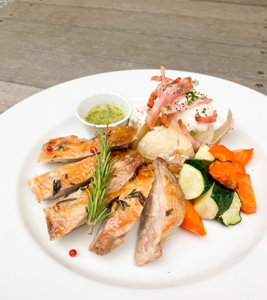 ローズマリー香るグリルチキンや、自家製のローストビーフなど、サンタクロースの家でホームパーティーをしているかのような、あたたかく心躍る気分を味わえます。