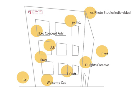 このシステムを主催する株式会社エクスは、港区芝のオフィスビルを一棟借りし、連携する広告プロダクションや写真撮影スタジオと同居しています。