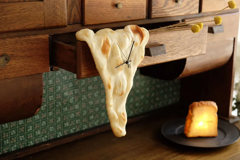 パンにまつわるアート作品を企画・製造するアーティストブランドYUKIKO MORITA(運営:株式会社PANTHEM)(所在地:兵庫県神戸市兵庫区/代表:森田 優希子)は、本物のナンをそのまま特殊な防腐防カビ加工を施した壁掛け時計『今、ナン時(イマ ナンジ)』の新スタイル『“トロける”ナン時』を2022年6月に発表しました。同社は2016年より本物のパンからできたライト『PAMPSHADE(パンプシェード)』の製造販売を行っており国内外で人気を呼んでいます。“トロける”ナン時は現在オンラインショップにて販売中です。また、7月4日までプレゼントキャンペーンも実施中です。