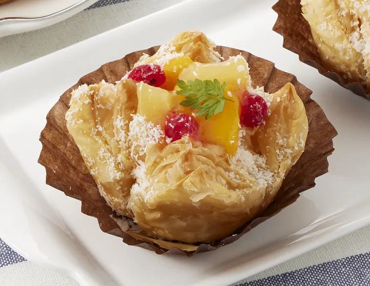 青森県産りんごを使った、サクサクのアップルパイにフレッシュなマンゴーをトッピング