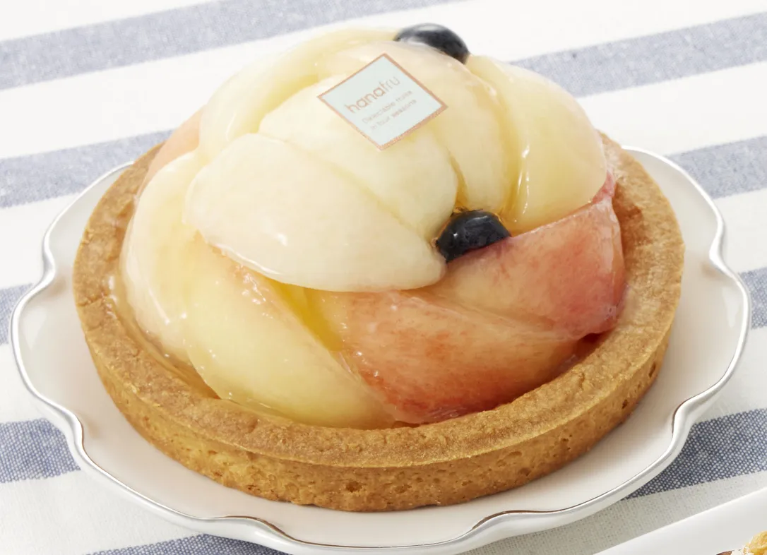 桃の下には、生クリームとカスタードクリームが詰まった贅沢なタルト