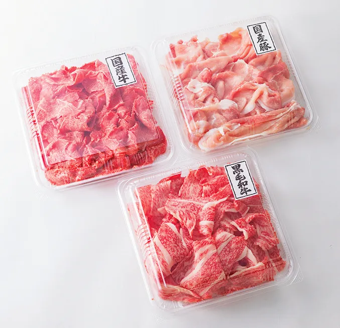国産牛、国産黒毛和牛、国産豚 各約300g