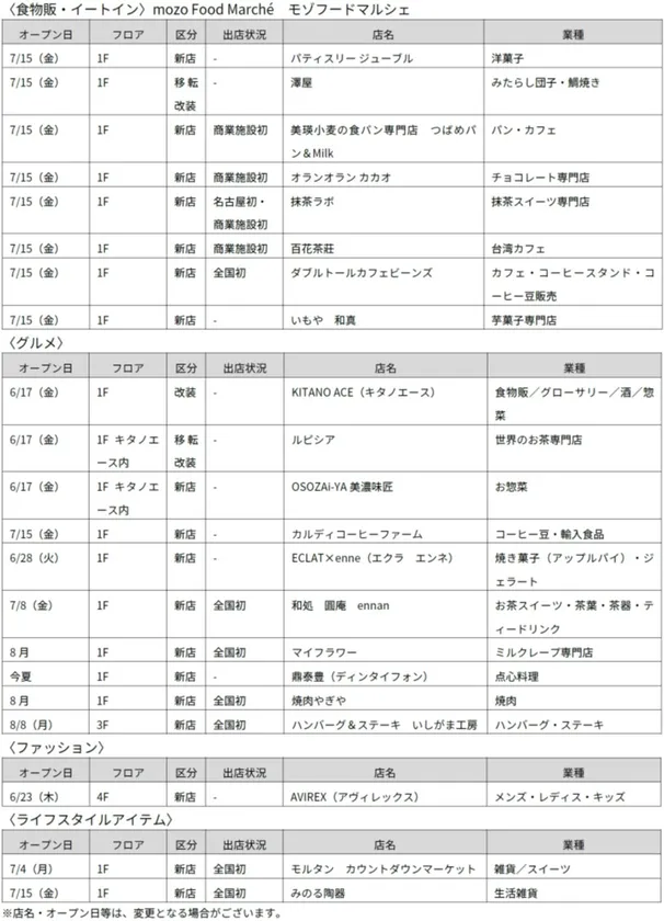 mozoワンダーシティ リニューアル第3弾 2022年7月15日(金) グランドオープン!~地元愛知発!新しい「食」ゾーンが誕生~