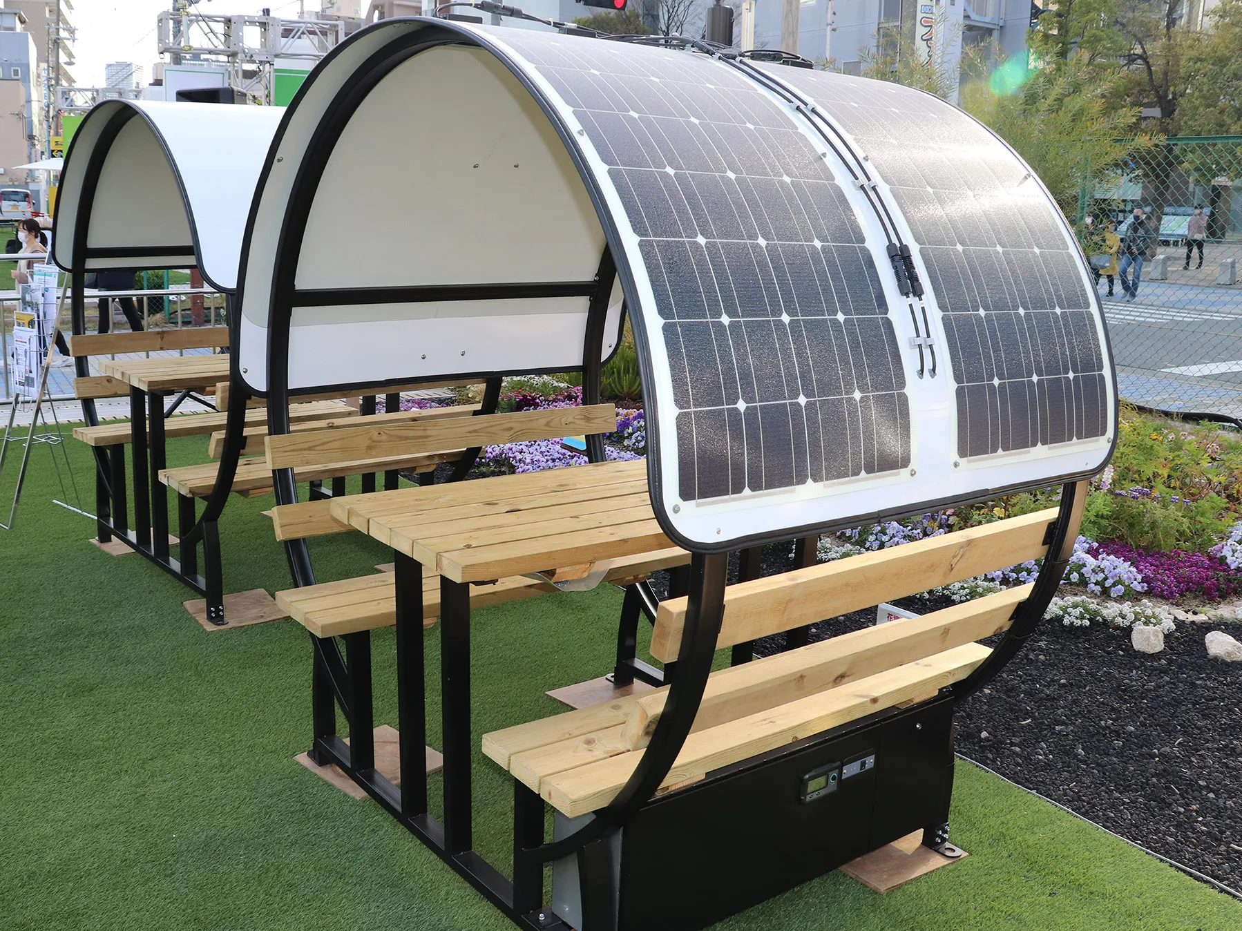 2021年1月からスタートしたSDGs推進プロジェクトである「楽しくアクション!SDGs」と協力した展開エリア。 大型テント内にグッズショップ「わくわくマーケット」をはじめ、ご来場頂いたお客様が涼しく休憩できる飲食スペースを設置。また、ソーラー発電&空気から水を作る製水器を搭載した車両「オフグリッドトレーラーボックス」、屋外イベントやワーケーションに最適なテーブル・チェアのキットの屋根にソーラー発電&蓄電池を装着した近未来型ガーデンファニチャー「テーブルハウス OFF GRID」の展示など、様々なSDGsにまつわる情報を発信していくエリアです。
