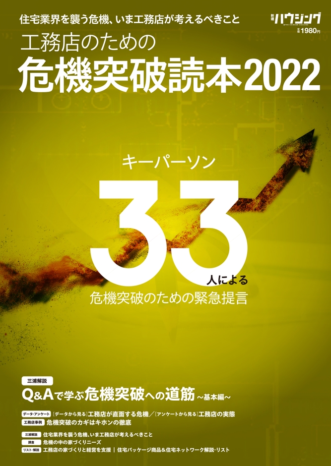 コロナ禍におけるウクライナ情勢に伴う原油価格・物価高騰、上がらない給料、住宅業界を直撃する資材価格の高騰など、工務店が直面する危機的な状況を挙げれば枚挙にいとまがない。