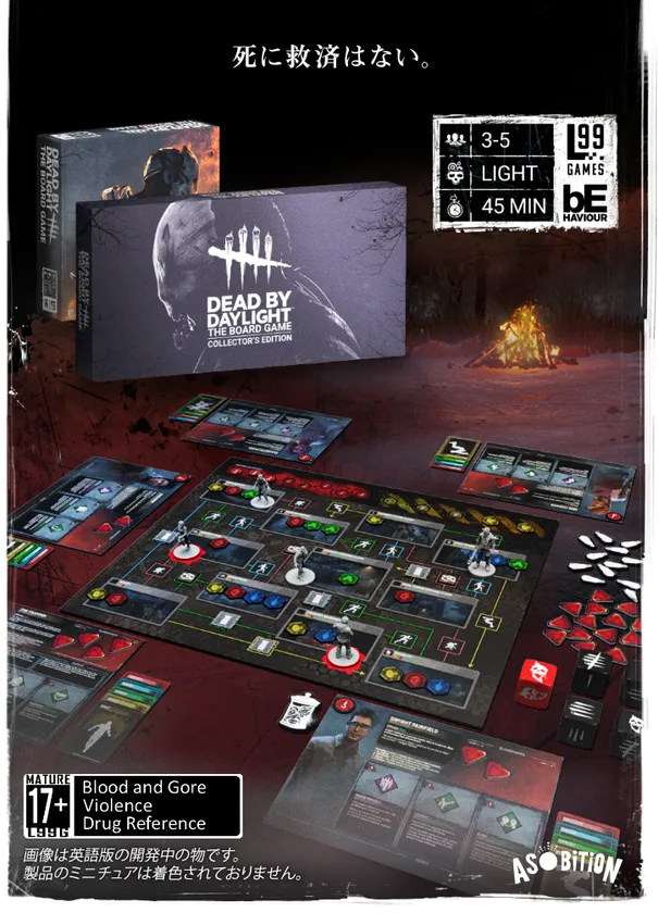株式会社アソビションは、Behaviour InteractiveがアメリカのボードゲームパブリッシャーのLv99gamesとコラボし開発した、ホラーゲーム「Dead by Daylight」ボードゲームの日本語版を発売します。それに伴い、先行販売のクラウドファンディングを2022年7月4日15:00より開始いたします。