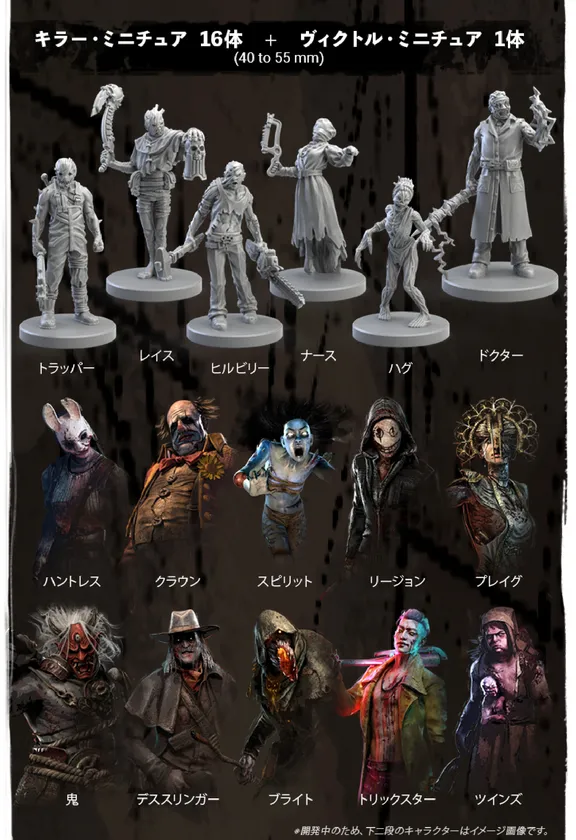 1.サバイバー7人とキラー6人のミニチュアが含まれ、これを手に入れるとすぐ遊べる『スタンダードエディション』