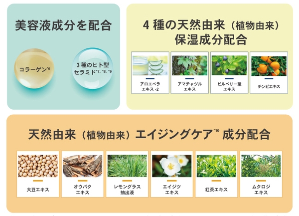 コラーゲン※6、3種のヒト型セラミド※7、※8、※9