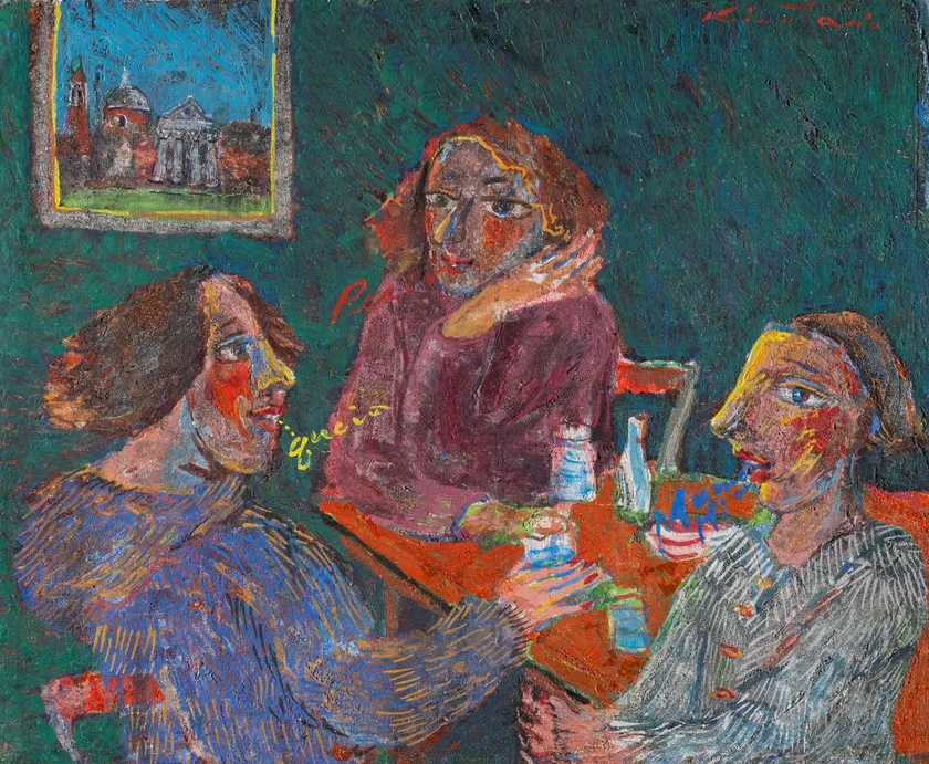 本特別展では、絹谷藝術の原点であり、今や代名詞でもある「アフレスコ」(イタリア語、英語:フレスコ)に焦点を当てており、後期展示では1973年制作のアフレスコ『シルビアとその友達』を初公開いたします。