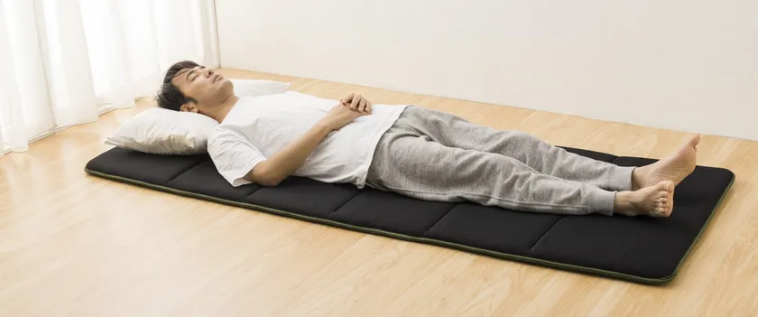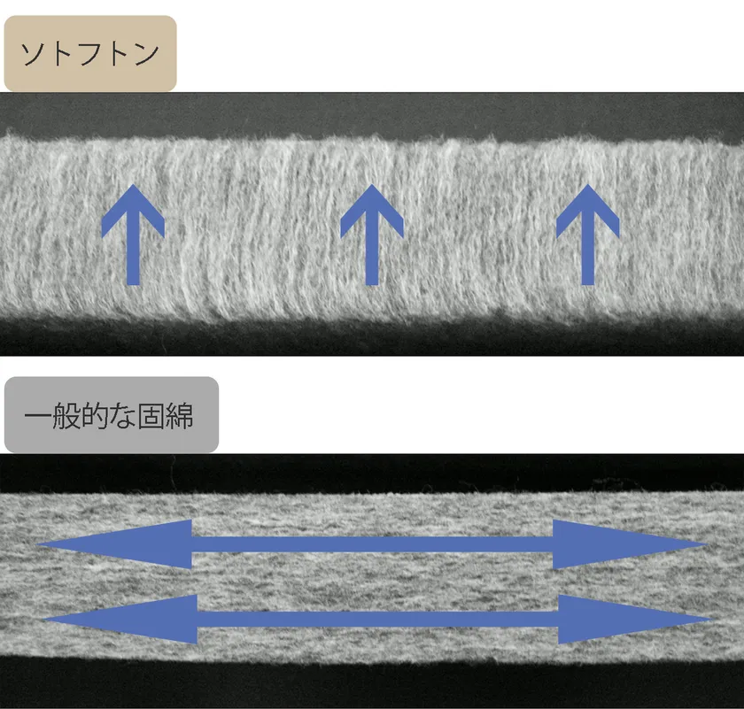 縦型特殊繊維中芯がしっかり身体を支えるので、フローリングの上に直に敷いてお使いいただけます。