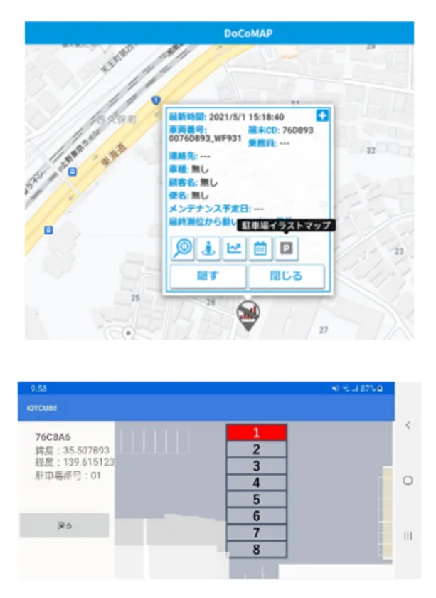 また、「コンテナ管理専用アプリ」は、メンテナンスが近づいたコンテナ位置を表示することや、同じ駐車場に停車している日程をカウントしてアラーム表示することなどができるため、輸送業者様の抱える問題を改善することが可能となります。