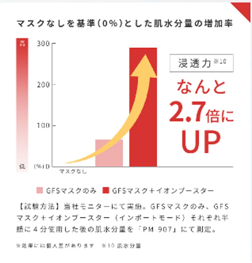 ・イオンブースター&GFSマスクでケアを行った場合、肌水分量は2.7倍に(※9)