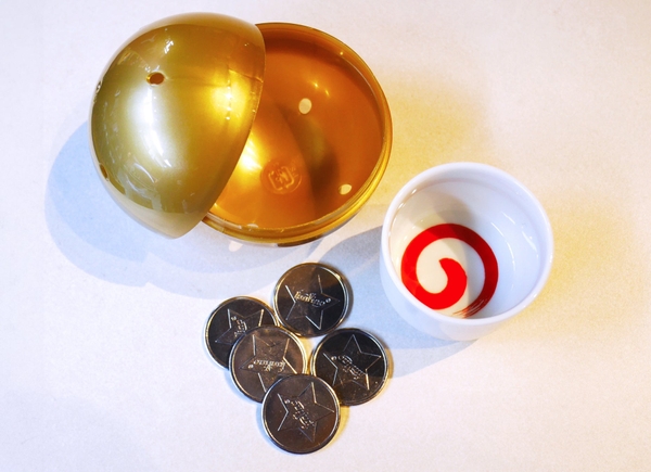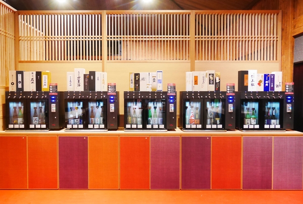 常時約30種の全国各地の日本酒を、コイン式サーバーにご用意しています。1個2000円(税込)のカプセルトイ(ガチャガチャ)の中には、オリジナルお猪口とコイン5枚(当たりカプセルには7枚)が入っています。コイン1枚で日本酒をお猪口1杯分、利き酒することができます。お猪口の文字は、金・赤・青・黒の4色。飲み終わった後は、お土産としてお持ち帰りいただけます。