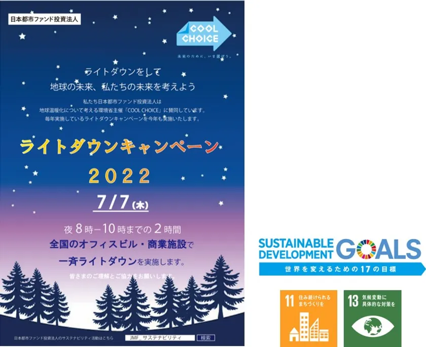 日本都市ファンド投資法人は、CO2削減、 地球温暖化防止に向けた活動に賛同し 保有32施設にて「JMFライトダウンキャンペーン」を実施