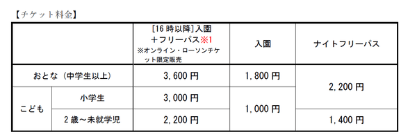 ※有効期限内の購入済みのチケット、年間パスポート、株主優待券、招待券などはナイター営業時
