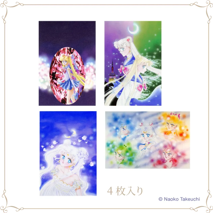 「美少女戦士セーラームーン ミュージアム」描き下ろし原画を使用したキービジュアルと、展示内容に合わせ原作シリーズ第一期、第二期の原画からセレクトしたラインナップのポストカードセットです。