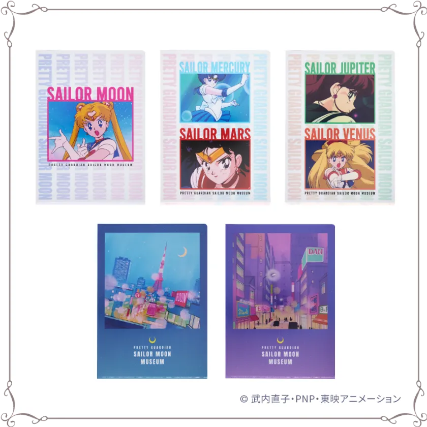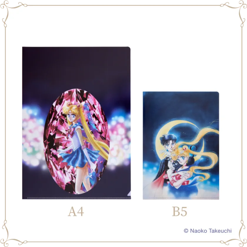 「美少女戦士セーラームーン ミュージアム」描き下ろし原画を使用したキービジュアルデザインのA4サイズクリアファイルと、歴代の原画からセレクトしデザインしたA5サイズクリアファイルのセットです。