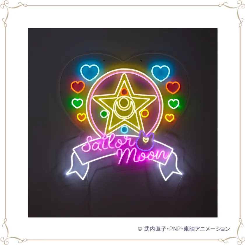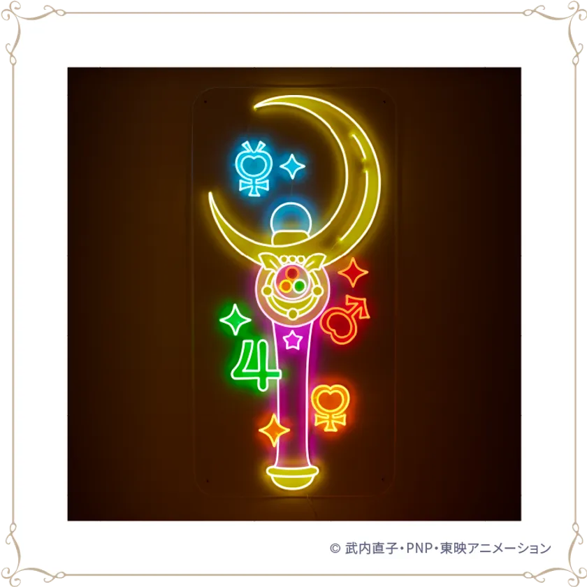 ムーンスティックとセーラー4戦士の守護星マークがデザインされたネオンサインアートです。全高約17cmと大きいサイズで、存在感抜群です。