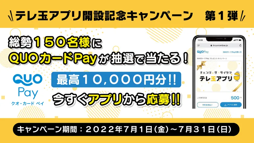 なお、スタートキャンペーンとして7月中にアプリをダウンロードした方から抽選で150名様にQUOカードPay(最大10,000円分)をプレゼント!より多くの方の参加をお待ちしています。