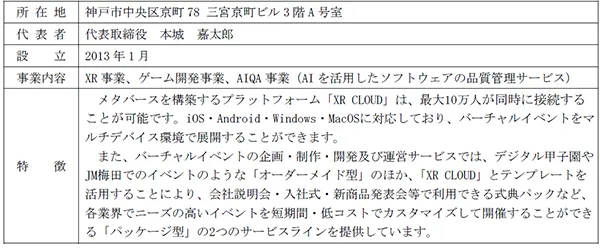 monoAI technology社は、長年オンラインゲームを制作する中で培ってきた開発力に強みを有しており、業界随一の性能を誇る自社開発のゲームエンジンを活用した、メタバース(インターネット上の仮想空間)のプラットフォーム「XR CLOUD」を展開しています。「XR CLOUD」は、最大10万人が同時に接続することができ、さまざまなイベントの開催に対応しています。