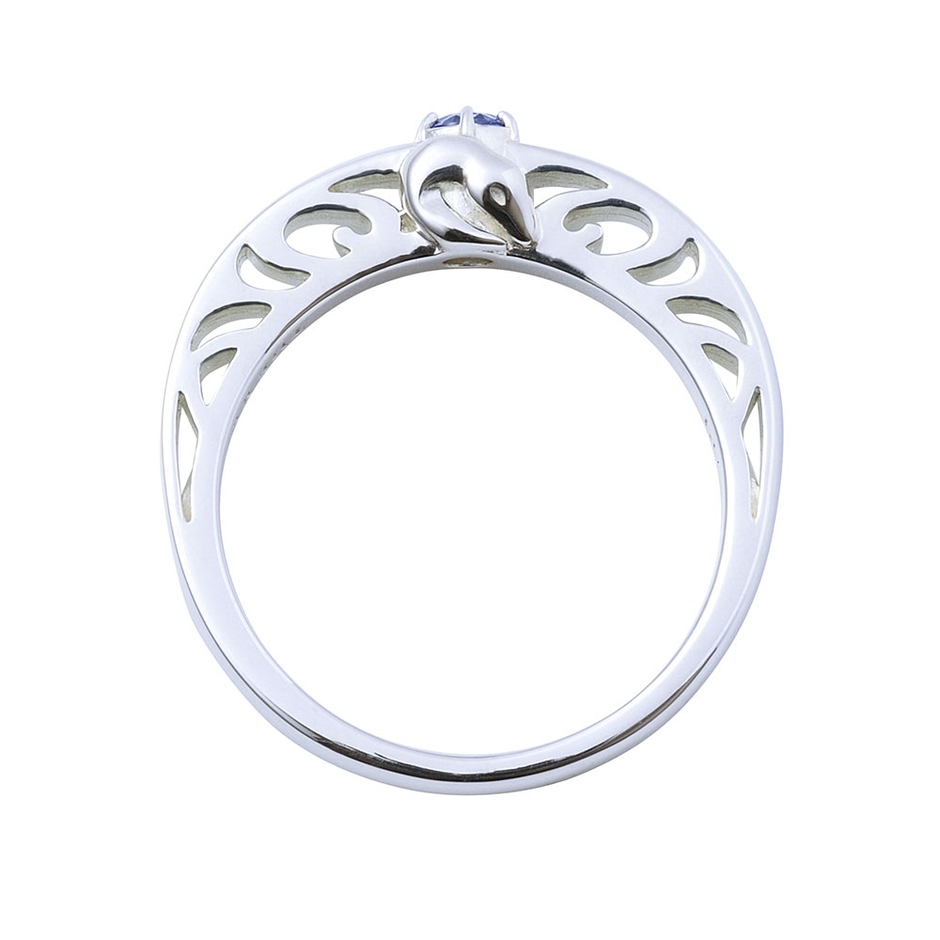甲丸フォルムに大粒のイメージカラーストーンをセットし、内側には名前刻印を施しました。石座部分には蛇をさりげなく取り込んだクラシカルなデザインです。