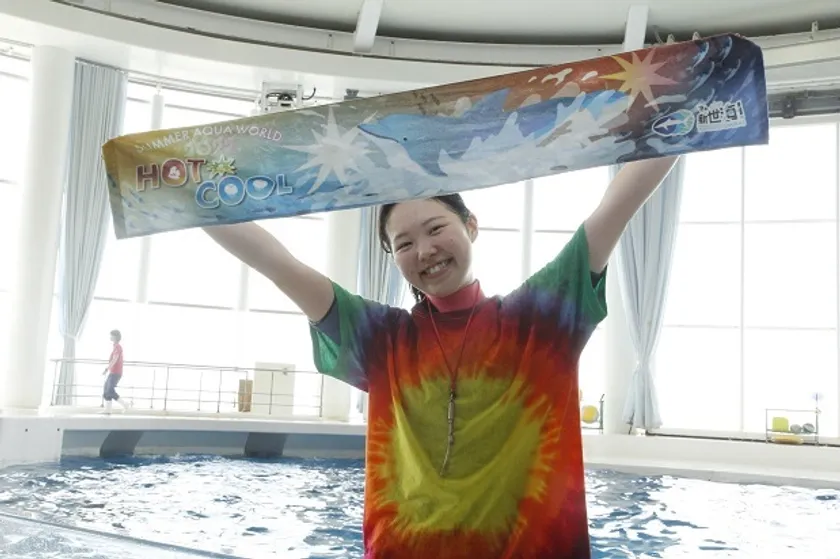 今年も夏期特別版イルカ・アシカオーシャンライブは、トレーナーとイルカたちの息の合った水中パフォーマンスをはじめ、会場が一体となって盛り上がる内容となっております。スーベニアショップ「モラモラ」で販売するオリジナルマフラータオルやうちわを手に、イルカ・アシカたちと一緒に全力で盛り上がっちゃいましょう!