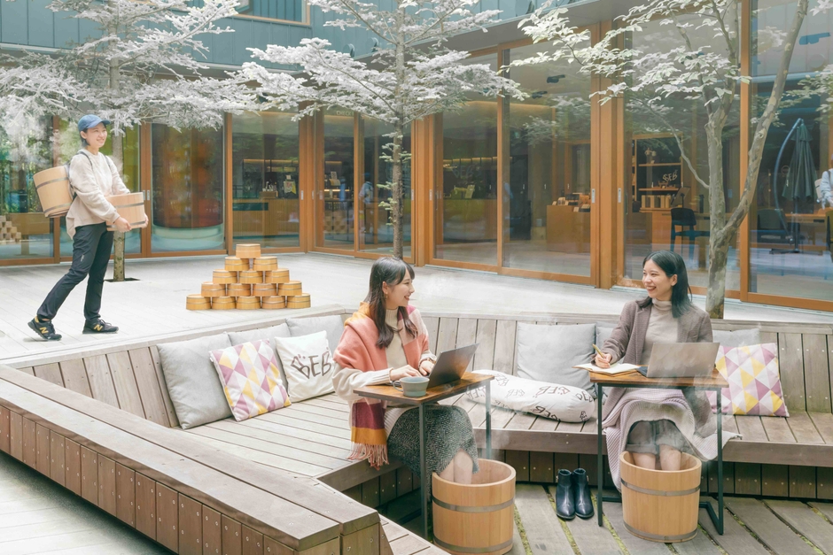「居酒屋以上 旅未満」の体験を提供する「星野リゾート BEB5(ベブファイブ)軽井沢」は、2023年1月4日から2月28日まで、足湯をしながら仕事もできる、 源泉のお湯をデリバリーする「源泉足湯デリバリーサービス」を提供します。BEB5軽井沢が位置するのは、源泉かけ流しの「星野温泉 トンボの湯」などがある、軽井沢星野エリア。本サービスは、スタッフが星野温泉の源泉をBEB5軽井沢までデリバリーします。パブリックスペース「TAMARIBA(タマリバ)」の好きな場所で足湯をしながら仕事をしたり、仲間と楽しくゲームをして過ごしたりなど、思い思いの時間を過ごすことができます。