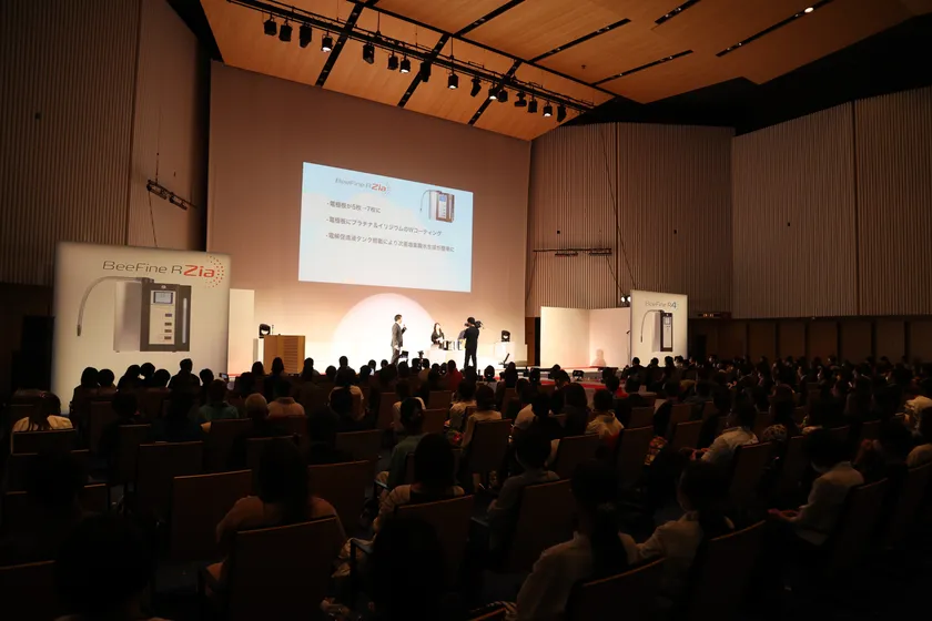 電解水生成器の新機種を2台同時リリースいたします。大人気ビーファインシリーズに「ビーファインR4」と「ビーファインR Zia」が新たに追加。開発担当者から製品説明を行い、新製品に対する理解を深めました。