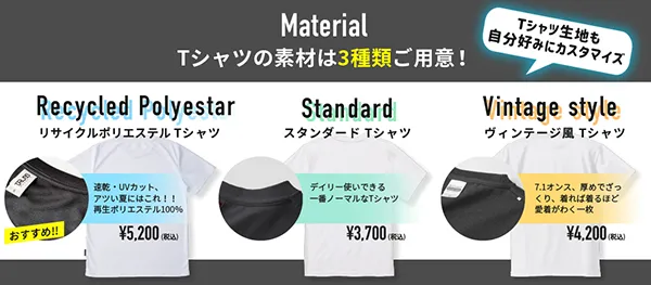各自でカスタマイズできるという「Merchan.jp(マーチャンドットジェイピー)」の特徴を生かし、17年目を迎えた「アニサマ」の歴代ロゴマーク16種を全部載せたTシャツに、参戦(参加)マークを自由に載せてアニサマ愛を背中で語っていただく「デコサマ」や、無地のTシャツにお好きな歴代ロゴマークやスタンプを載せて自由にデザインしていただく「オリサマ」の2種類が選択可能で、ベースとなるTシャツも、素材3種(リサイクルポリエステル・スタンダード・ヴィンテージ風)・色2種(白・黒)をご用意しています。