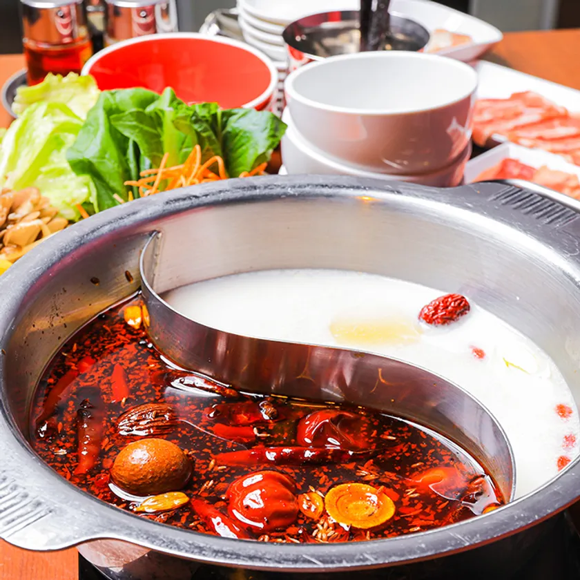 香り豊かな山椒や八角、棗など10種類の薬膳を使用し、「辛さ」と「美」にこだわった当店自慢の火鍋