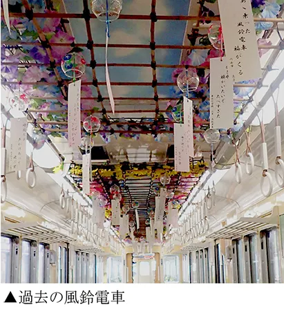能勢電車の夏の風物詩、電車内にたくさんの風鈴を飾り涼を呼ぶ「のせでん風鈴電車」を今夏も7月24日(日)より運行します。