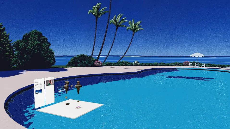 体験者はヘッドマウントディスプレイを着用し、バーチャル空間上に再現(※3)された永井博氏の作品の世界観に没入することができます。また、世界観を楽しむだけでなく作品集やグッズをその場で購入することもできます。