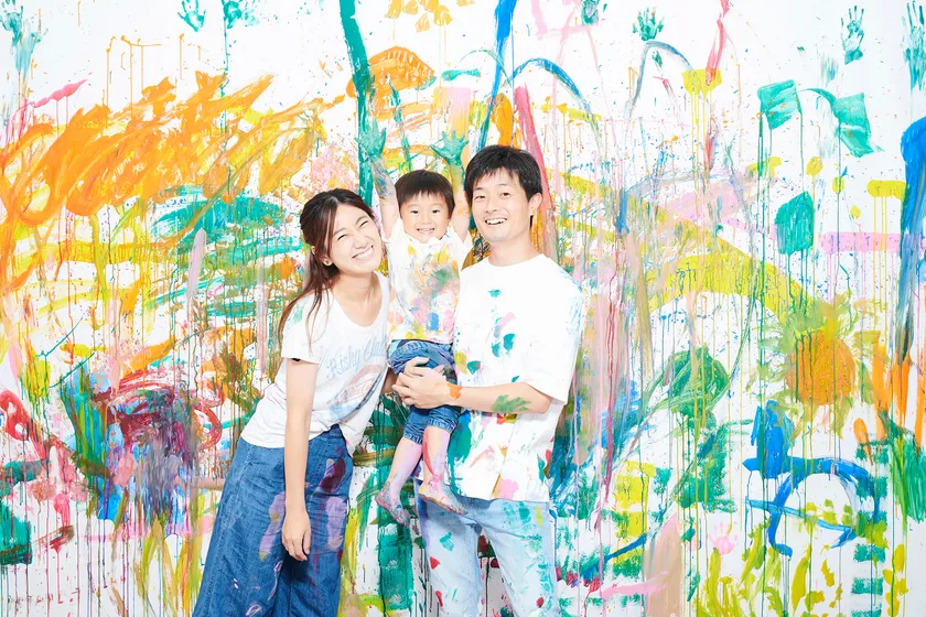 白い壁や服に、自由に絵の具をぶちまけるのがSOYLABO!の遊び方。大人も子供も「汚しちゃダメ!やってはダメ!」というリミッターを外して、思い切り遊び心を解放してほしい。そして、家族や友達と一緒に、いつまでも記憶に残る写真体験にしてほしい――そんな思いが込められたフォトスタジオです。