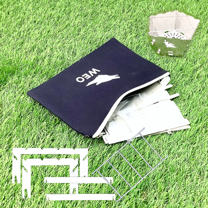 本製品は主に木炭や薪(小枝など)を使用した「WEO焚き火台オプションギア」となり、大掛かりな薪割り等のギアを準備する事なく気軽に焚き火を楽しむことが出来ます。4つのパーツを組むだけなので、大体10秒で設置が可能です。(五徳部)
