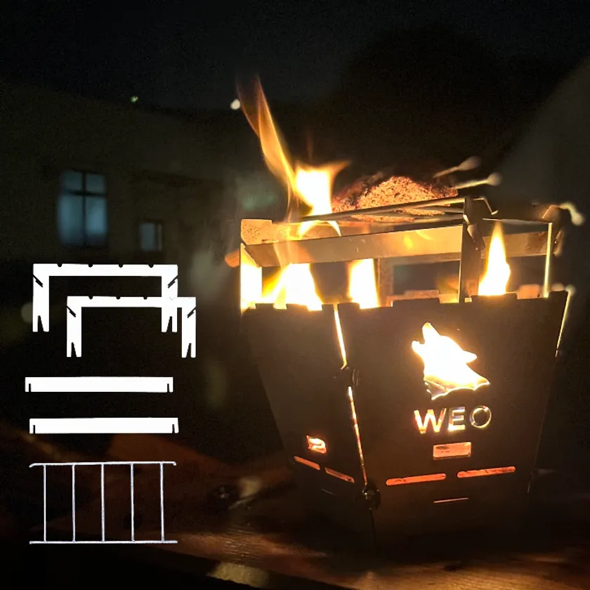 昨今のアウトドアブームにより様々な方がキャンプを楽しむ中で、「今までにない、より長く半永久的に使えるコンパクトな焚き火台が欲しい」「キャンプの朝の淹れ立てコーヒーを楽しめる簡易な焚き火台が欲しい」という声から第一弾「WEOホタテ用焚き火台」を開発。