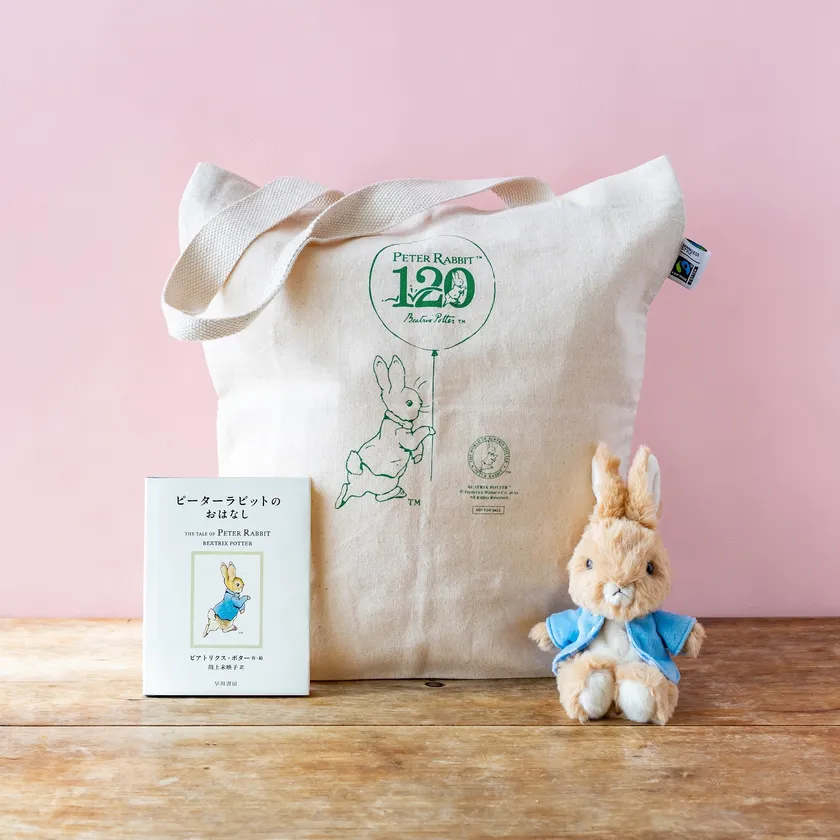ピーターラビット(TM)グッズ(トートバッグ・ぬいぐるみ)・『ピーターラビットのおはなし』(新訳絵本)