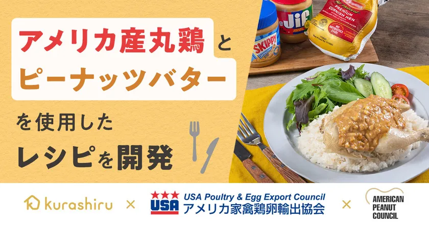 クラシル×アメリカ家禽鶏卵輸出協会×アメリカンピーナッツ協会 「アメリカ産ピーナッツバター」と 「アメリカ産丸鶏(ゲームヘン)」のコラボレーション! 『アメリカ産ピーナッツバターソースの香味チキンライス』 レシピを公開
