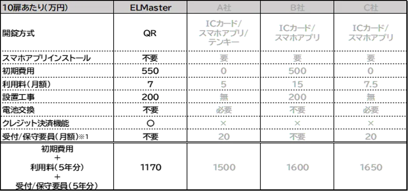 <類似製品導入運用費比較>