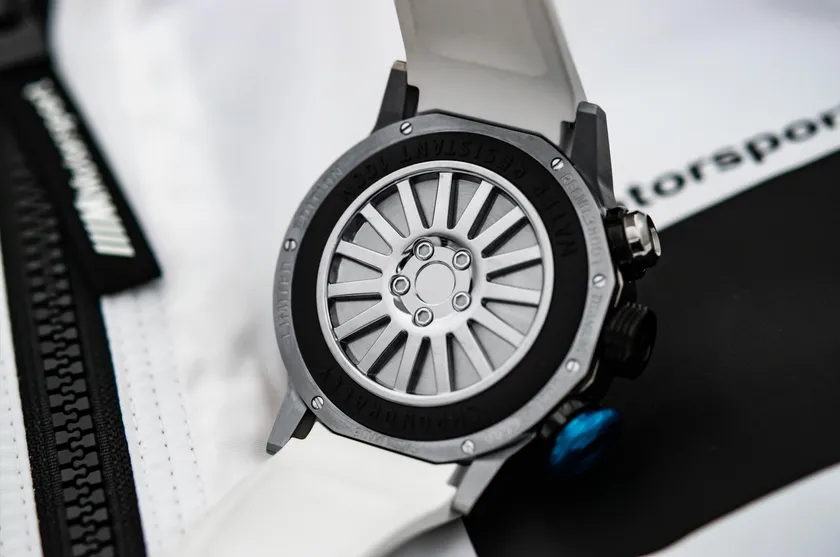 クロノラリーは、チタンケース、精巧に作られた文字盤、特徴的なオーバーサイズセコンドプッシュボタン、タイヤのホイールをデザインしたユニークなケースバック、タイヤの形をしたソフトラバーストラップが特徴的なモデルです。今回、BMW M モータースポーツとのスポンサーシップを記念した『クロノラリー BMW M モータースポーツ リミテッドエディション』2タイプを発売いたします。