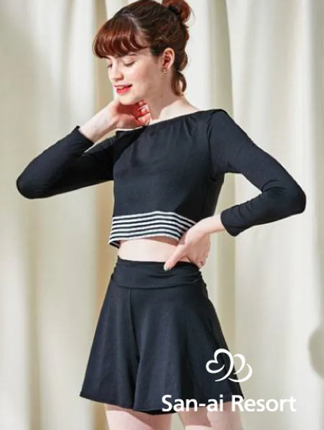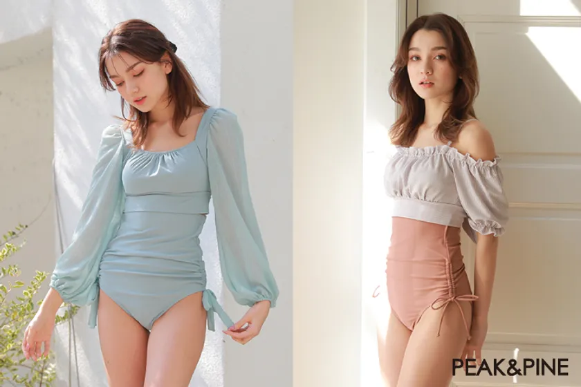 肌の露出が少ないのでオシャレに隠せる・体型カバーとしても注目度が高い水着です。