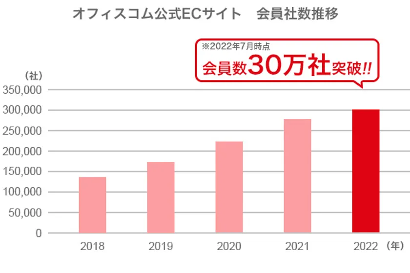 オフィス家具の製造・販売から内装工事までをトータルに手掛けるオフィスコム株式会社(本社:東京都千代田区、代表取締役社長:室木 剛、以下 オフィスコム)は、2022年7月に本店サイトの会員社数が30万社を突破いたしました。